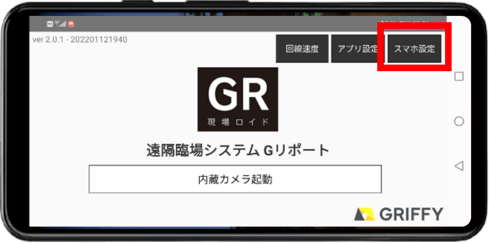 ②アプリトップ画面で「スマホ設定」をタップ