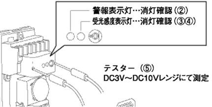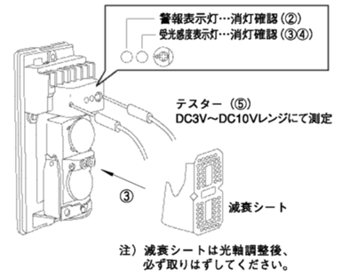 ⑤減衰シートを被せて警報表示灯/受光感度表示灯が消灯しているか確認して下さい。