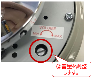 カーデルカークルの回転灯の音量調整方法について 回転灯本体にて音量の調整が可能です。 ①ねじ込み式のカバーを反時計回りで外します。 ②音量つまみで調整します。(マイナスドライバー等をご用意ください) ③カバーを取り付けます。 以上で、回転灯の音量調整は完了です。