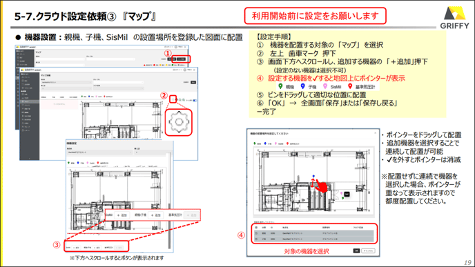 ④設定する機器を✔すると地図上にポインター(指示棒)が表示