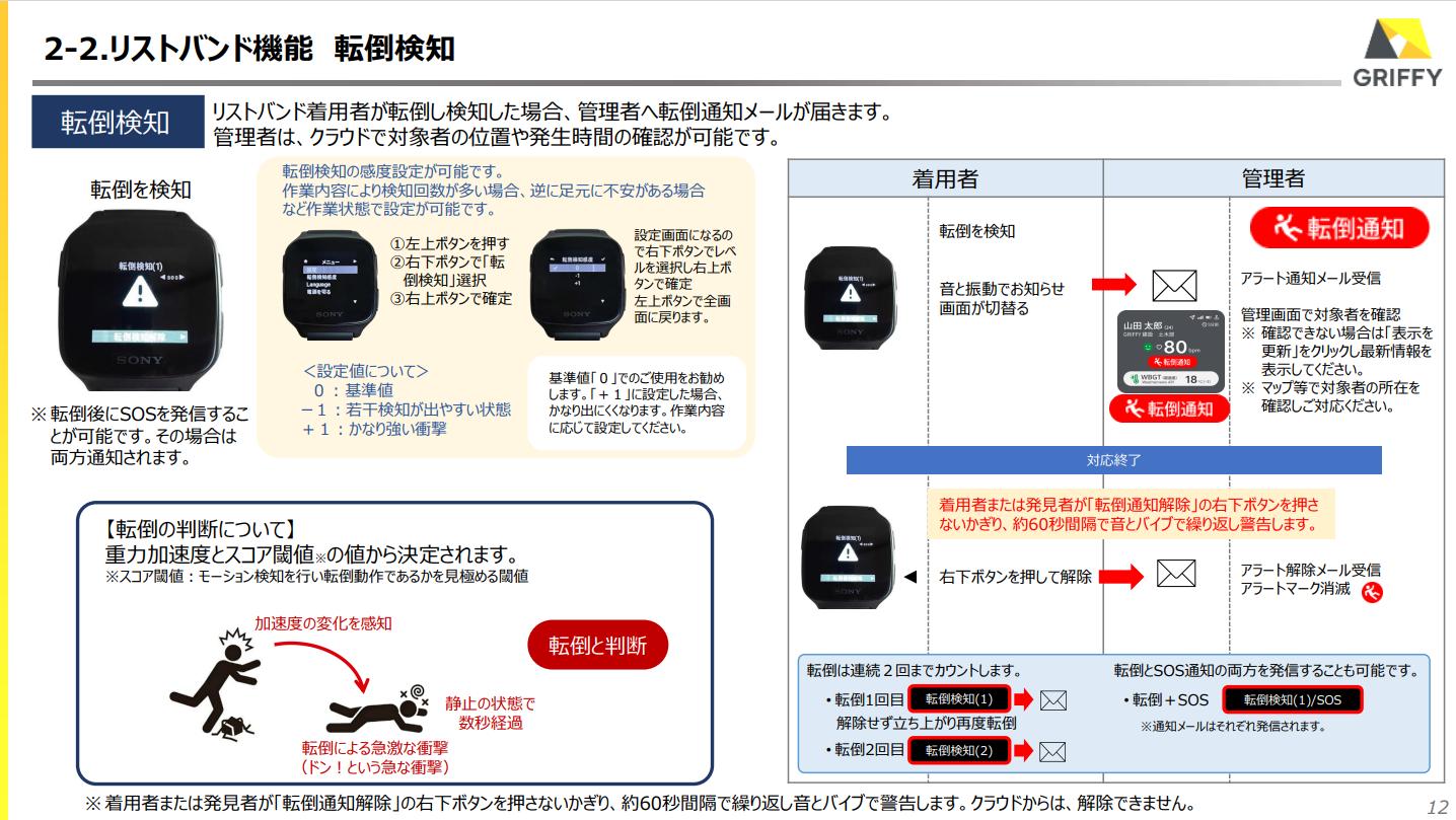 2-2.リストバンド機能 転倒検知をご参照ください。