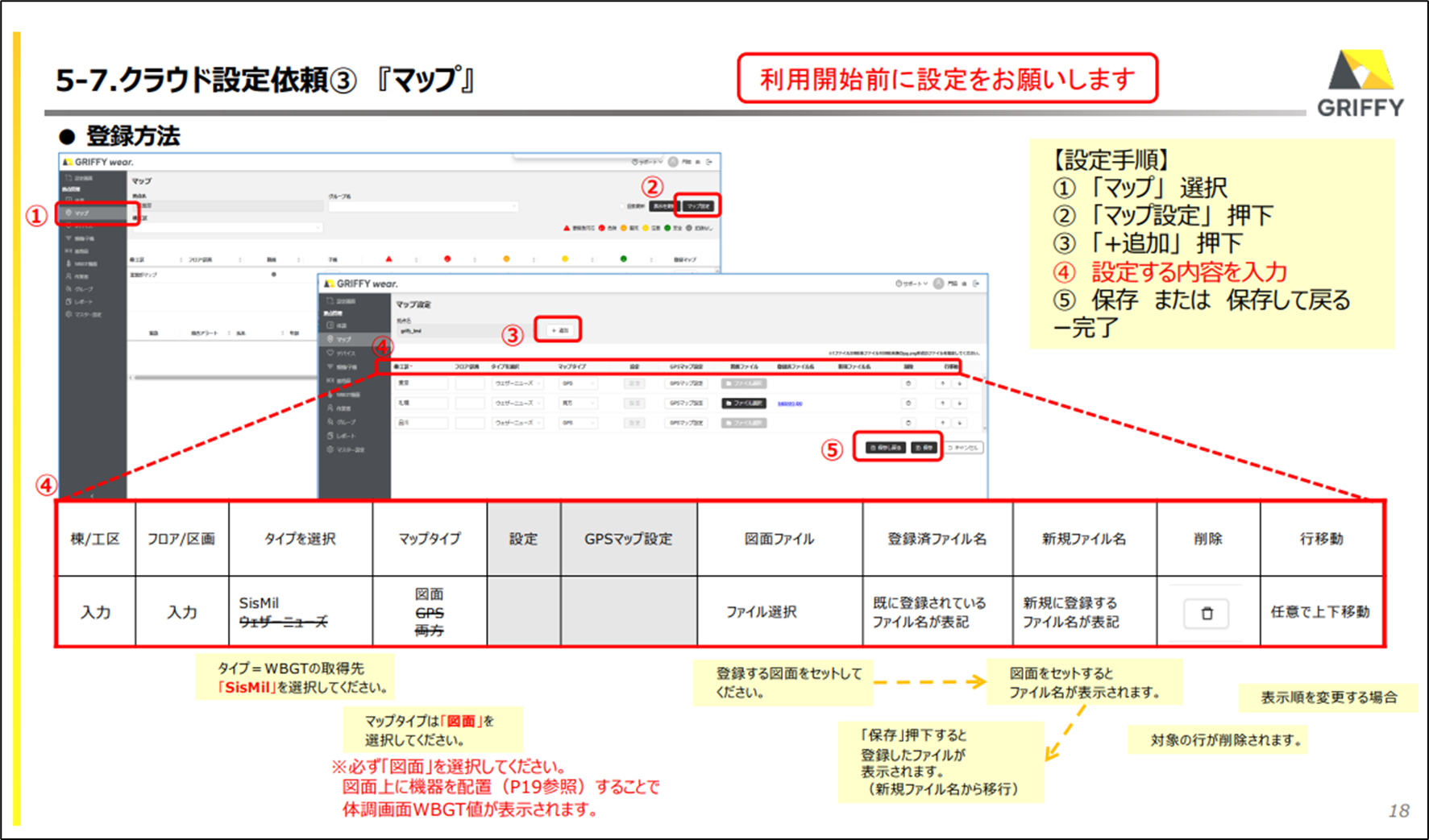 ゲンバイタル(BLE)のマップ設定済みですがマップが表示されない マップ設定より「マップタイプ」が「図面」に正しく設定されているかご確認ください。 マップ設定より「マップタイプ」が「図面」に正しく設定されているかご確認ください。 ユーザーマニュアルP.18(5-7.クラウド設定依頼③ 『マップ』)を参照してください。