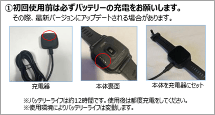 ・充電前に端子部分を軽く拭き取り、汗や水分が残っていない状態で充電してください