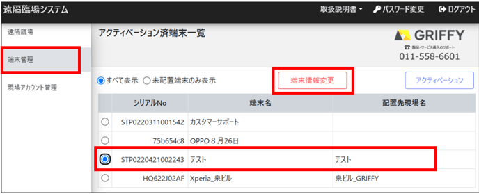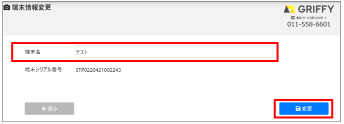 2.「端末管理」から変更したい端末名を選択し、「端末情報変更」をクリック、新しい端末名を入力後、「変更」します。