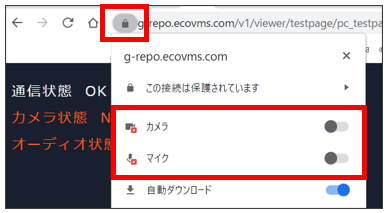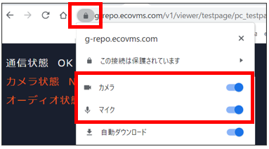 GリポートにてPCでログイン後、カメラとマイクが利用できない。